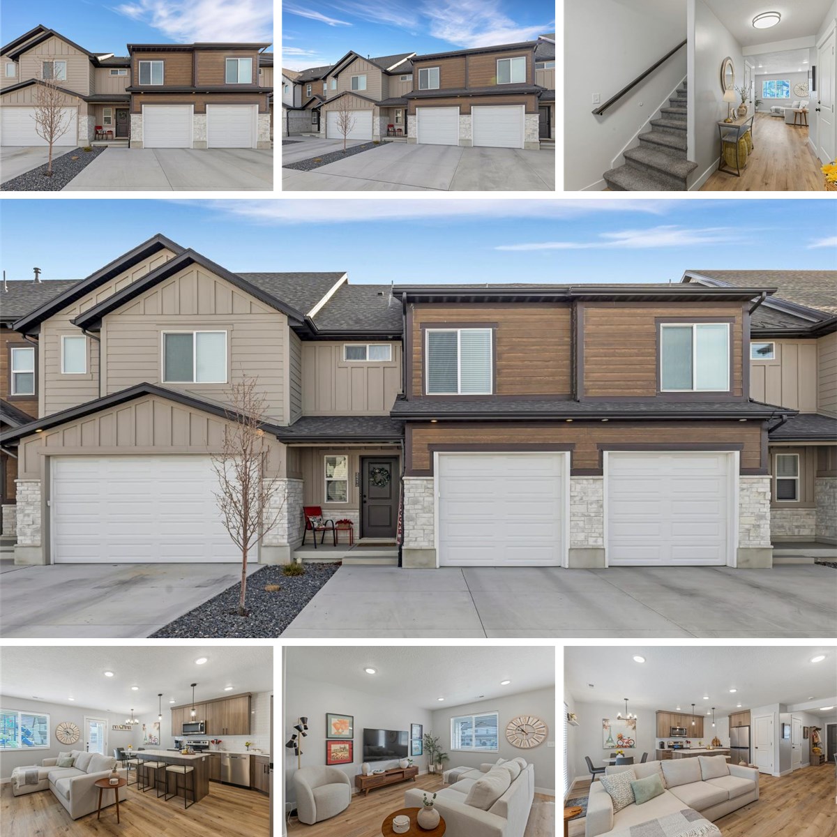 Beautiful 2023 townhome with spacious open-concept great room, quartz counters, upgraded LVP flooring, and warm neutral finishes throughout. Three bedrooms and three baths include an oversized primary suite with separate tub and shower and walk-in closet. Attached garage features extra storage and a handy work bench area, perfect for projects or gear. Amazing location next to a playground with walking and biking trails, near a fishing pond, amenities, and West Davis Corridor access.